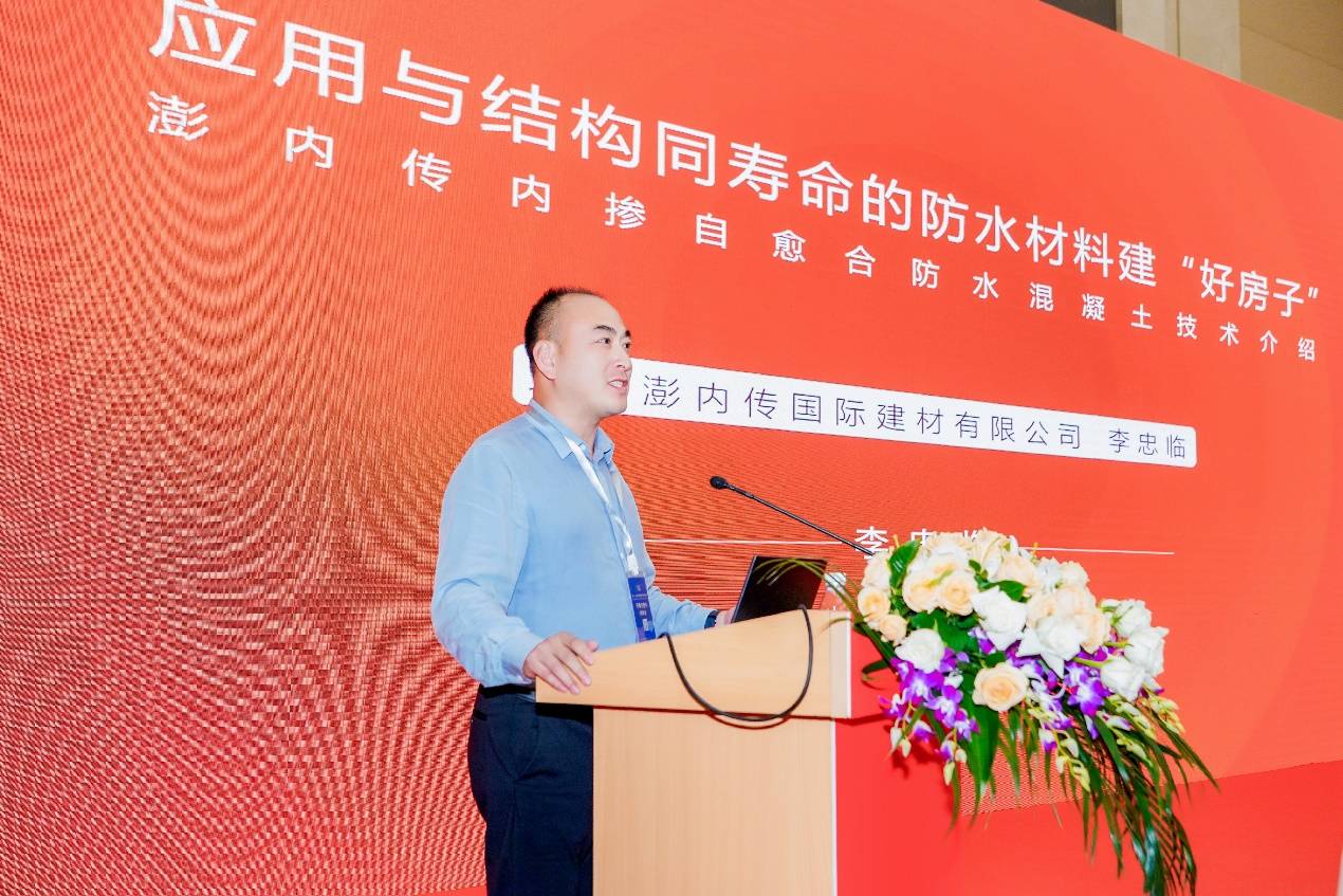 北京澎內(nèi)傳國(guó)際建材有限公司市場(chǎng)總監(jiān)李忠臨以《與結(jié)構(gòu)同壽命防水材料助力建造“好房子”》為題作了專題報(bào)告,首先總結(jié)分析了當(dāng)前建筑物滲漏的主要原因,然后介紹了澎內(nèi)傳防水系統(tǒng)的機(jī)理、性能與技術(shù)特點(diǎn),可從根本上解決滲漏問(wèn)題,最后與大家分享了澎內(nèi)傳結(jié)晶自愈合防水混凝土在工程中的應(yīng)用情況。